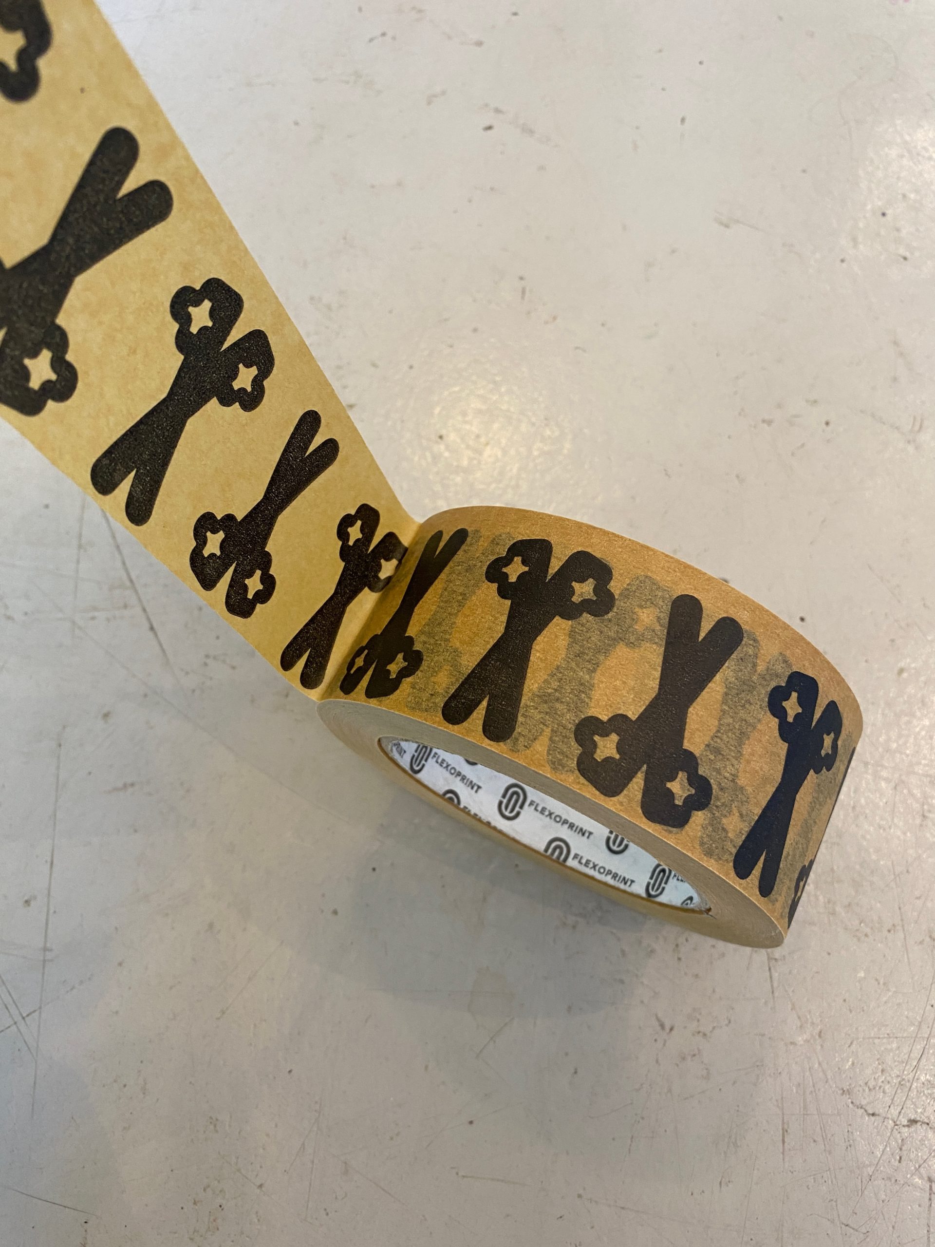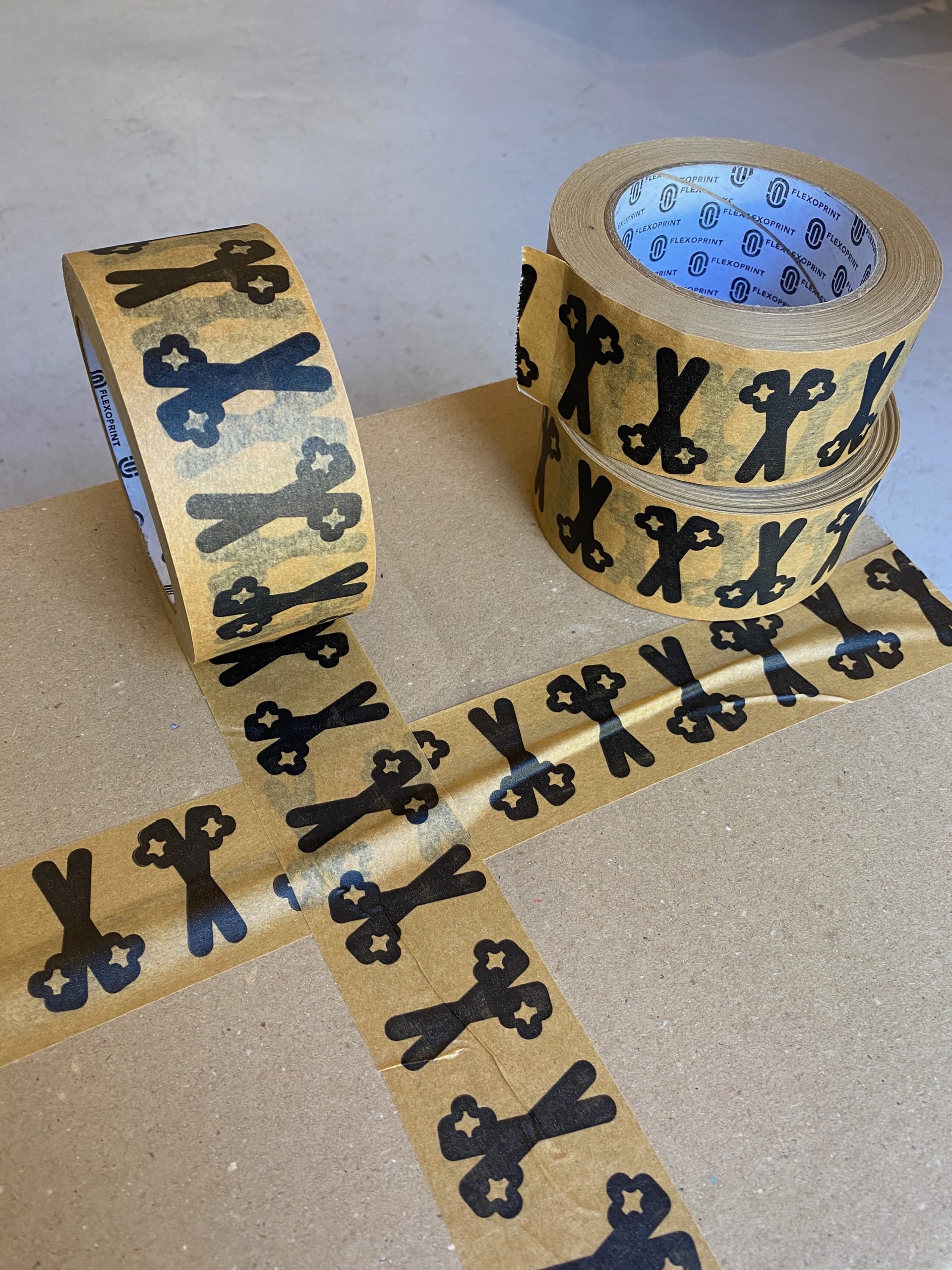 Pour notre scéno, on a commandé des rouleaux de tape avec le logo